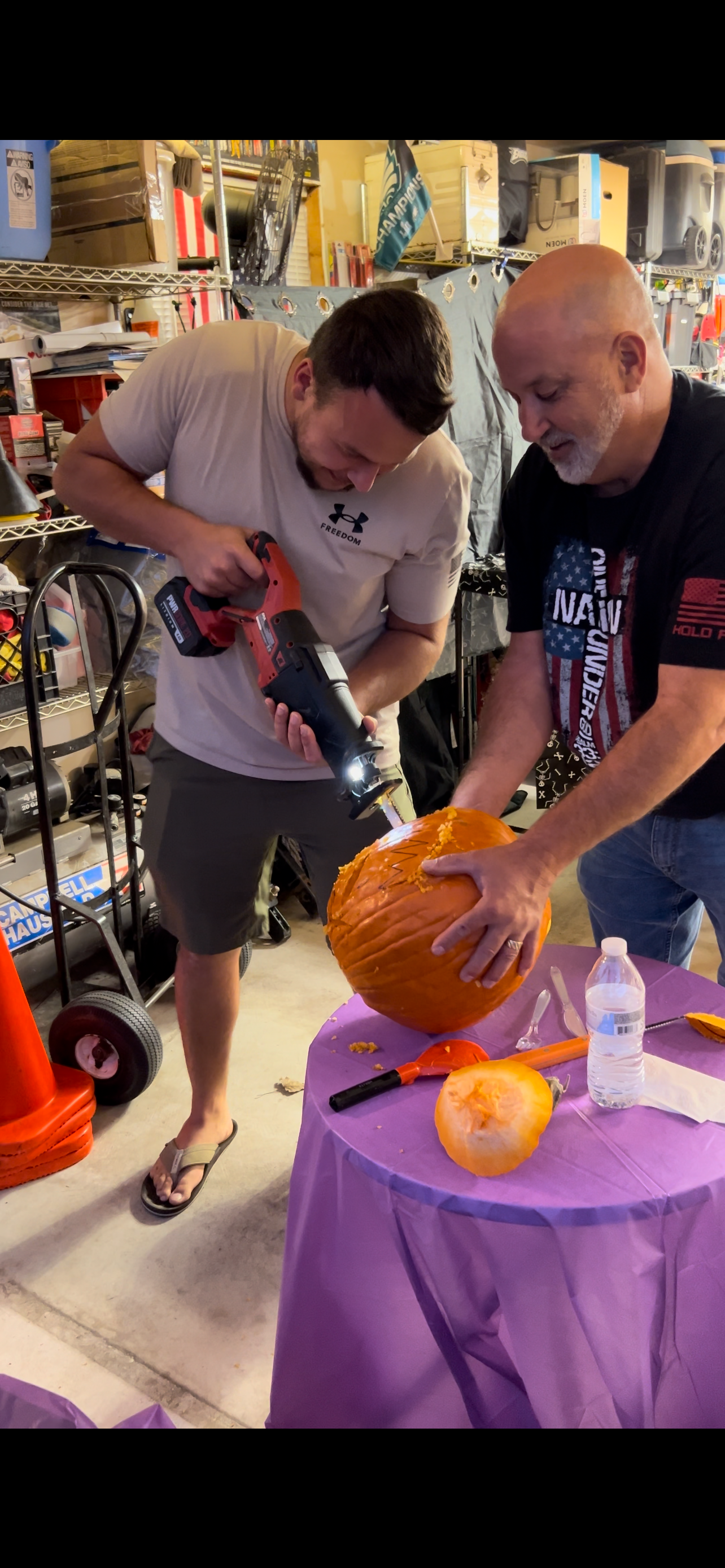 Power Tool Pumpkin Carving 2024! Colin came late and needed to work fast! Uncle Steve grabbed his reciprocating saw and they went to town!